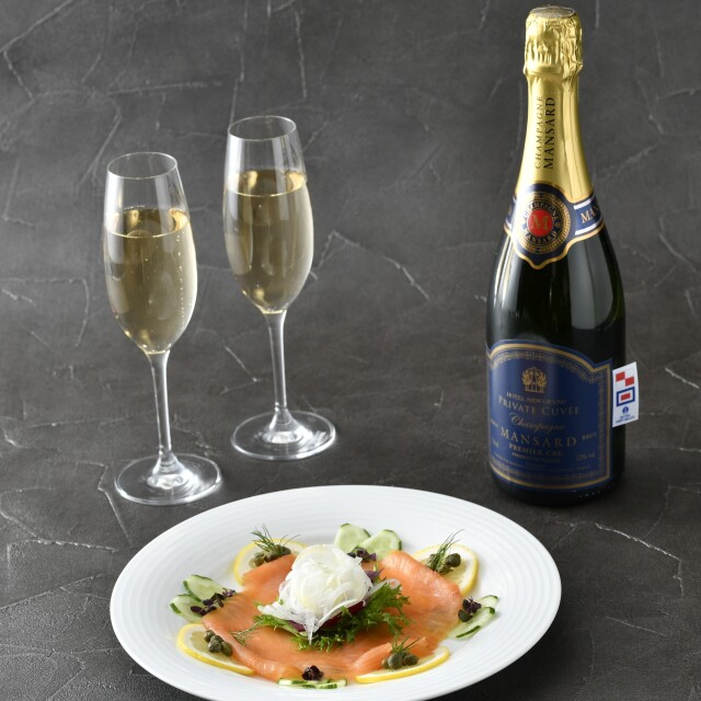 国内では当ホテルでしかお召し上がりいただけないマンサール社のシャンパン プルミエクリュ。